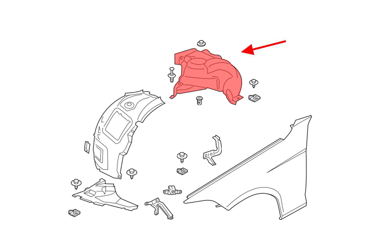 Wewnętrzne nadkole materiałowe lewe przednie (część tylna) do BMW Serii 2 (F23) Cabrio 2014-2018.