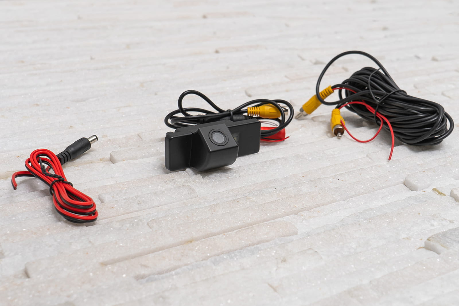 W zestawie znajdują się kamerą cofania, kabel RCA i kabel zasilający.