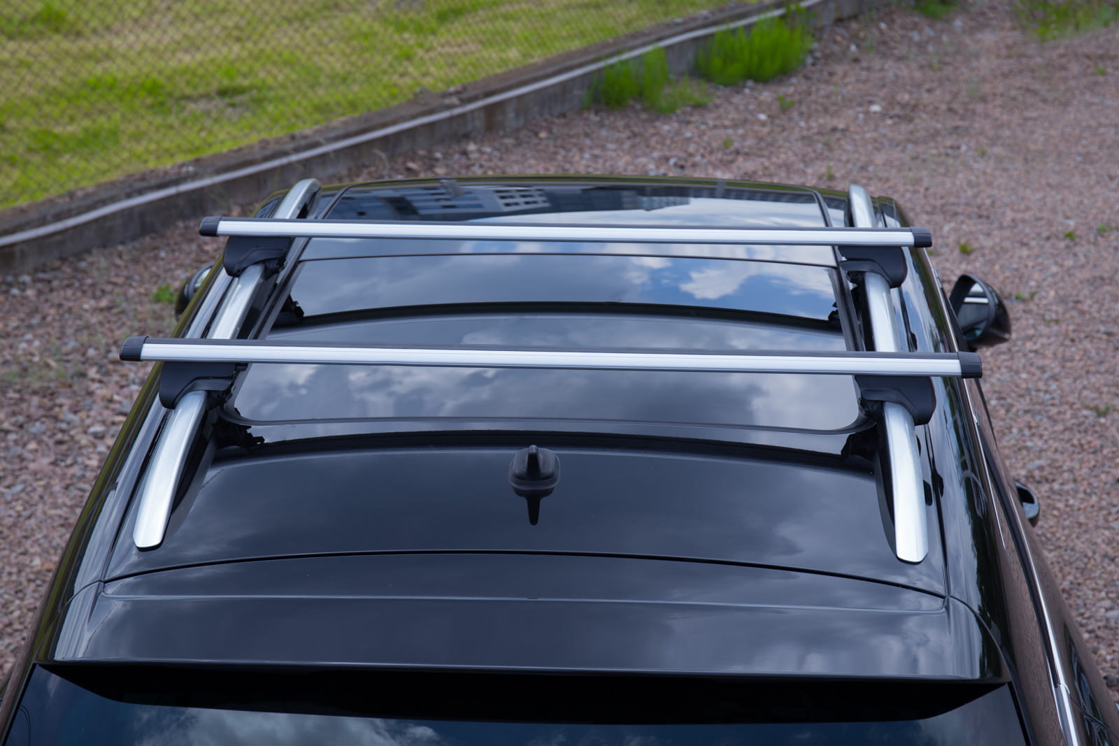 W komplecie znajdują się: dwie belki aluminiowe i cztery zaciski i system zabezpieczenia z kluczykami.