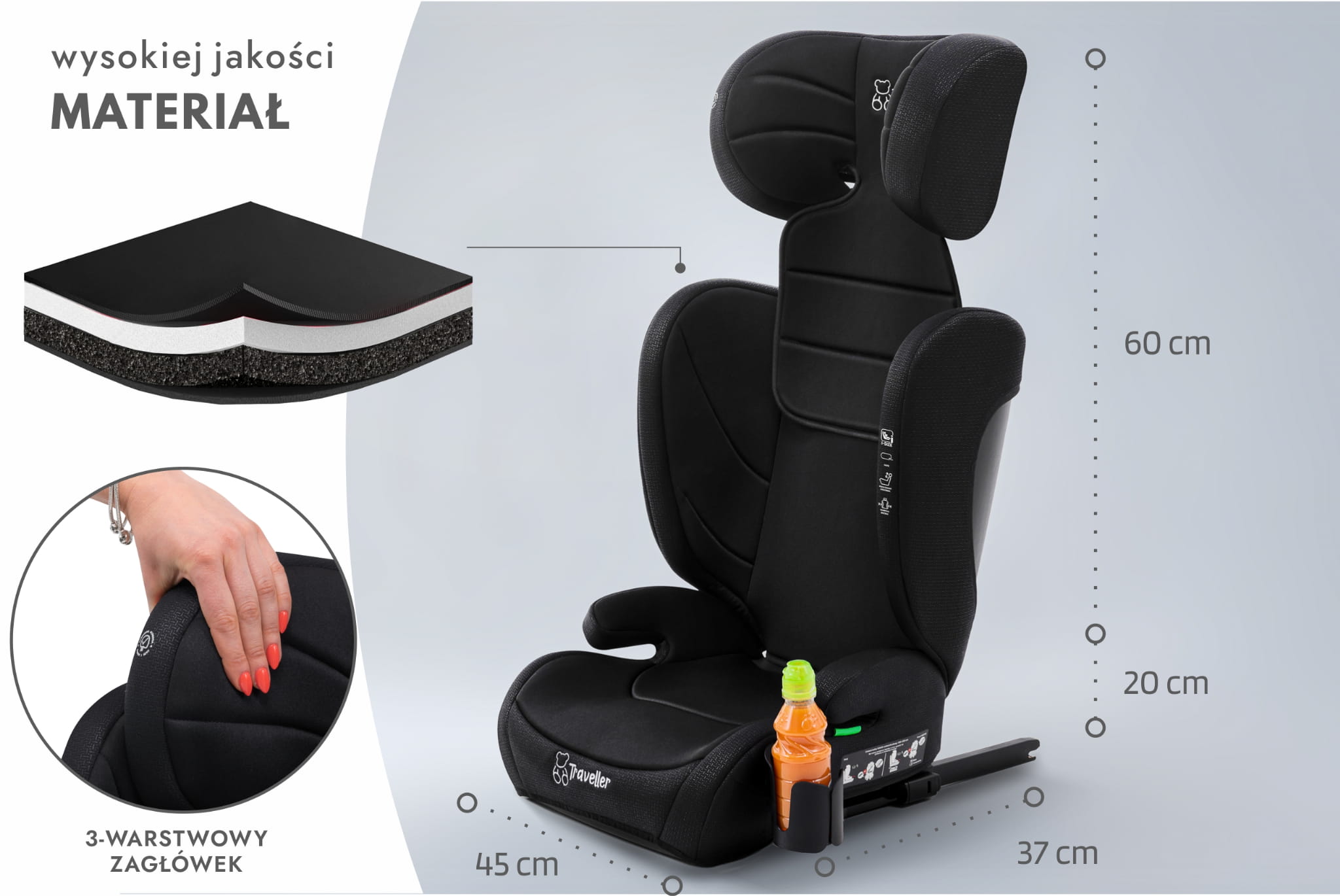 Fotelik wykonano z wysokiej jakości materiałów.