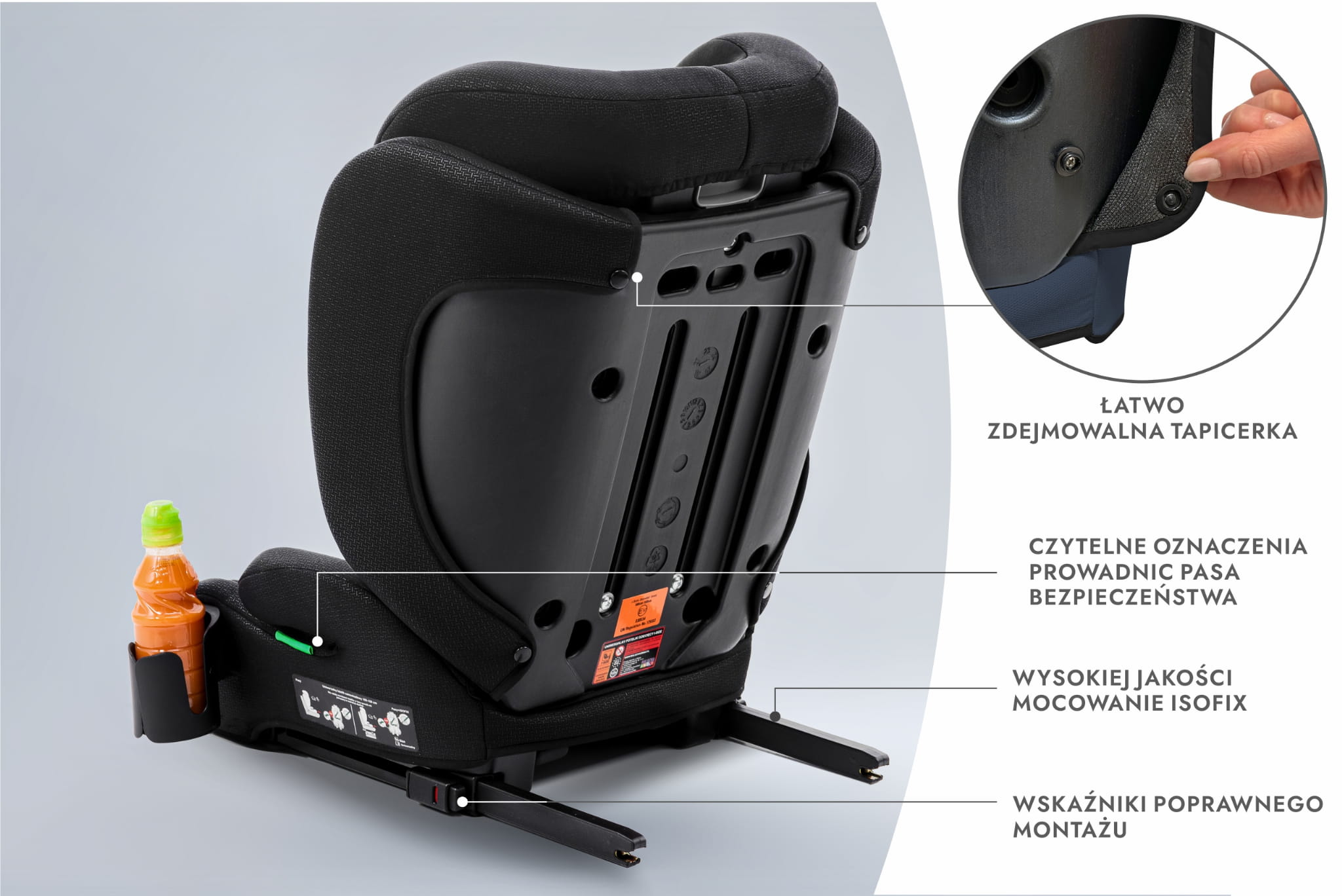 Fotelik rośnie razem z dzieckiem i może być użytkowany do momentu osiągnięcia 150 cm wzrostu (ok. 12 roku życia).