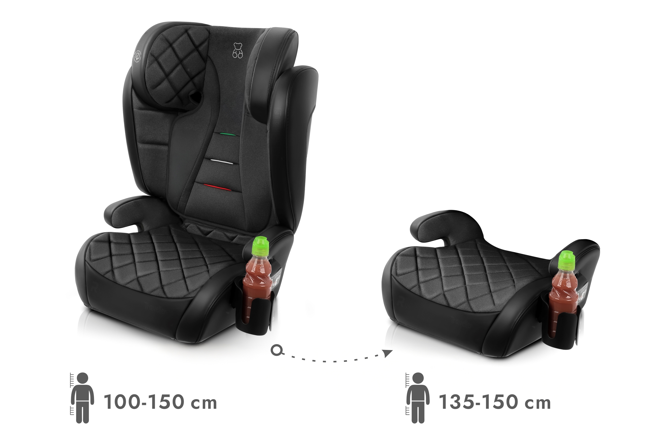 Certyfikowany fotelik samochodowy - model EZIO z eleganckiej ekoskóry, dla dzieci o wzroście 100-150 cm (3,5 - 12 lat).
