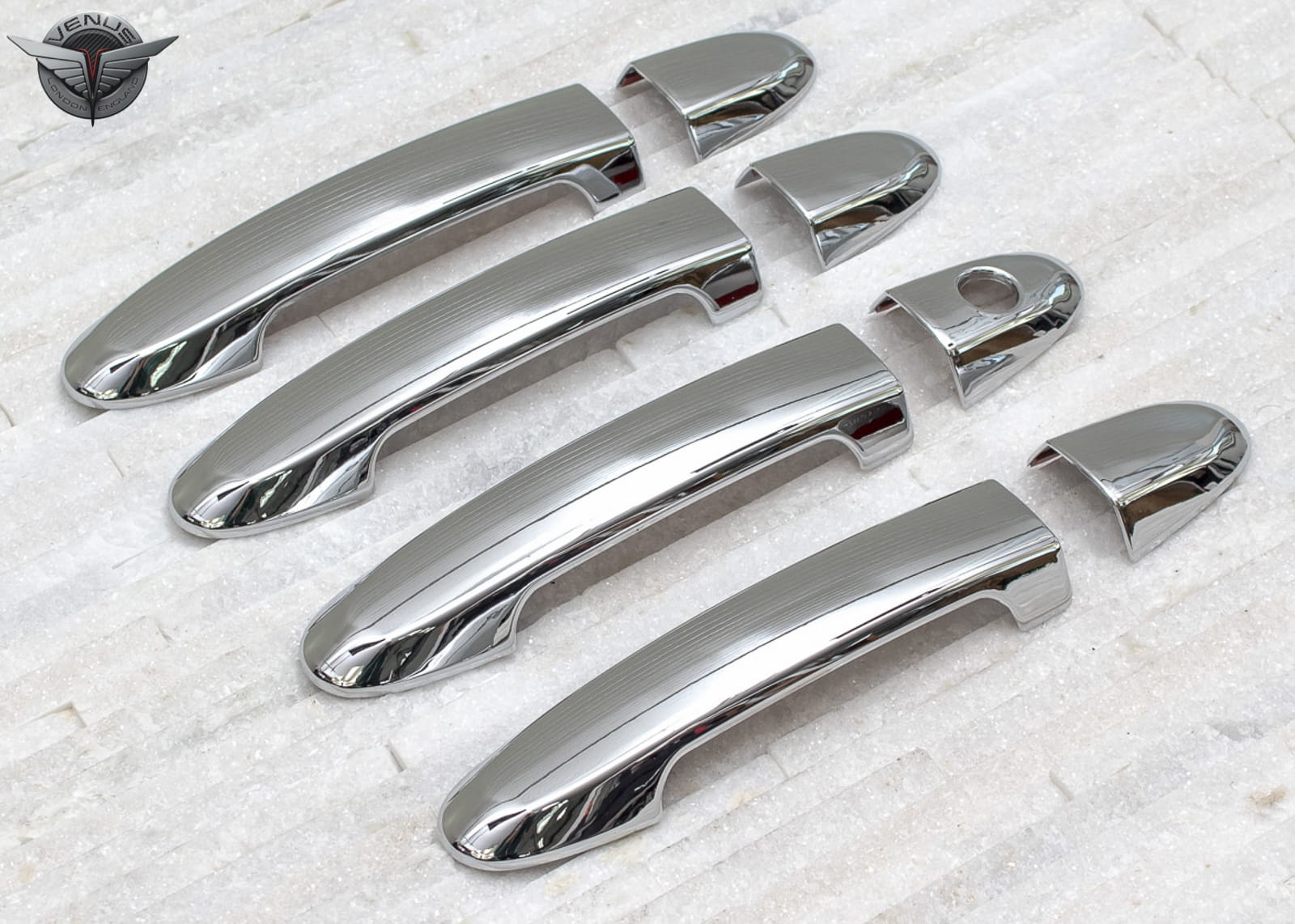 Dekoracyjne, chromowane nakładki na klamki to dodatek, który uzupełnia stylizację samochodu nutą sportowej elegancji. Idealnie dopasowane do linii samochodu, odmieniają wizerunek klamek modelu SANTA FE, czyniąc z nich prawdziwą ozdobę samochodu. Produkt wykonany z wysokiej jakości chromowanego tworzywa ABS.