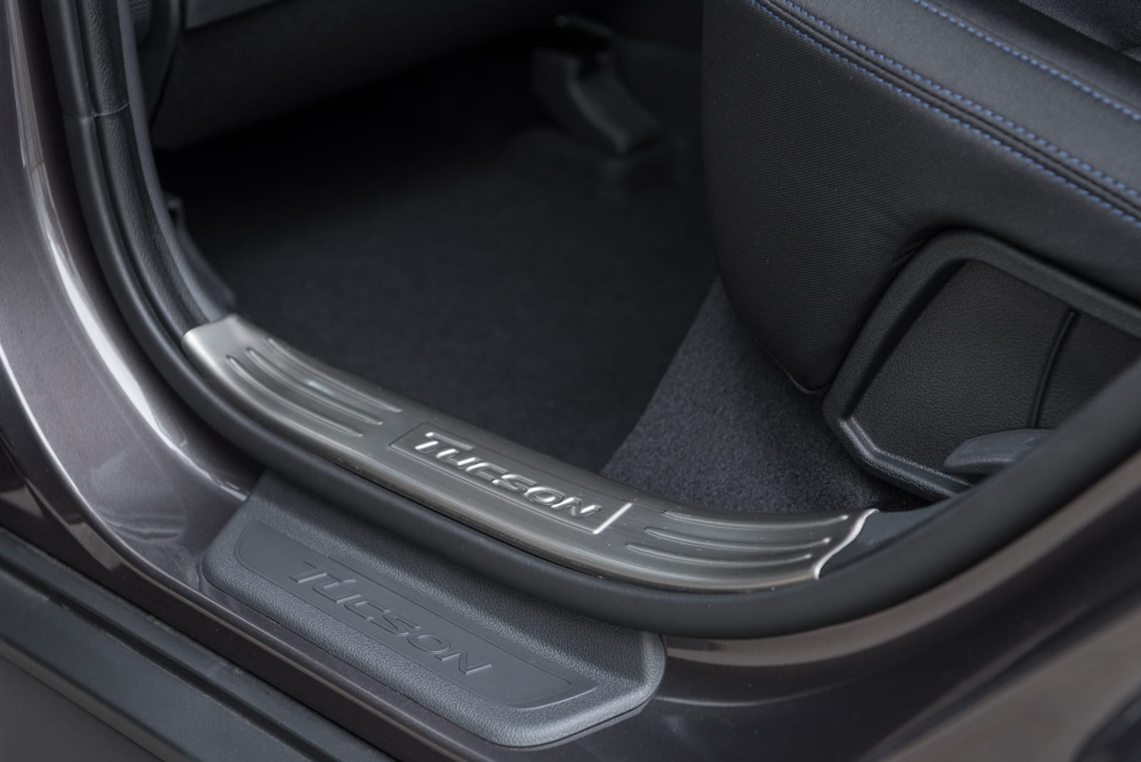 Listwy montowane są na górne, plastikowe części progów wewnętrznych. Uzupełniają linię wewnętrzną drzwi, nadają okolicy progów sportowy i elegancki wygląd. Model ten przykuwa uwagę ozdobnym, tłoczonym napisem TUCSON, który zdobi każdą listwę. Oprócz walorów stylizacyjnych, listwy odgrywają rolę ochronną, zabezpieczając progi przed zarysowaniem i uszkodzeniami, jakie mogą powstać przy wsiadaniu oraz wysiadaniu z auta. Produkt wykonany z wysokiej jakości szczotkowanej stali nierdzewnej.