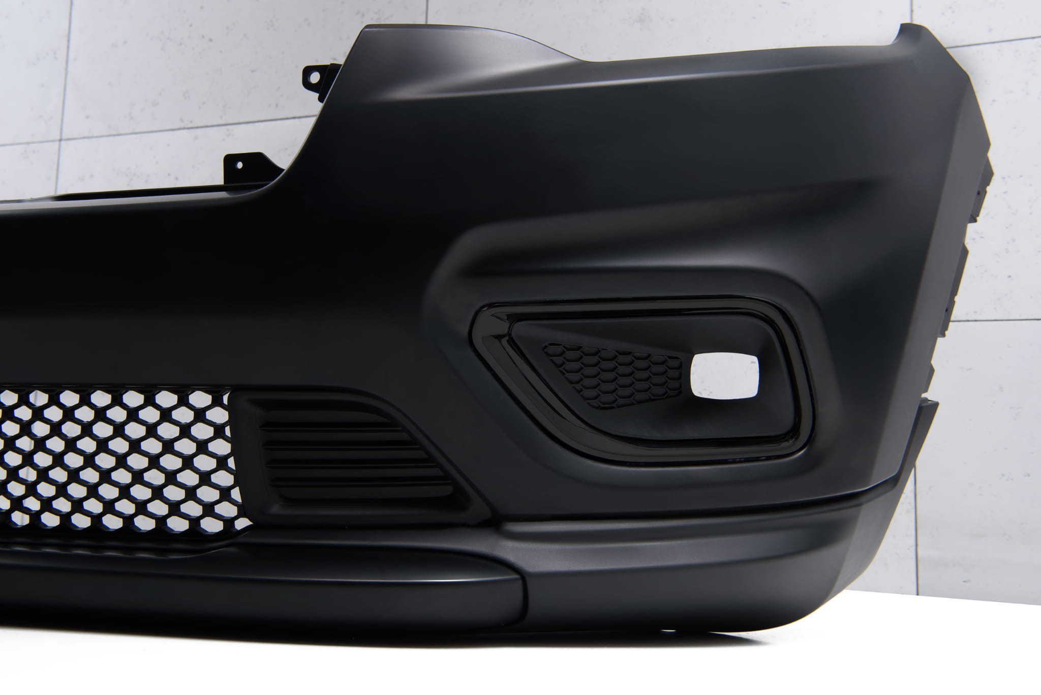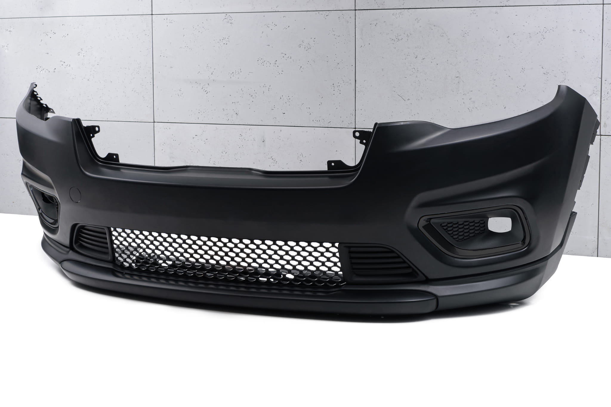 Kompletny zderzak przedni (bez otworów pod czujniki parkowania PDC), dedykowany dla JEEP CHEROKEE V (KL) 2018-2023 (wersja po faceliftingu).
