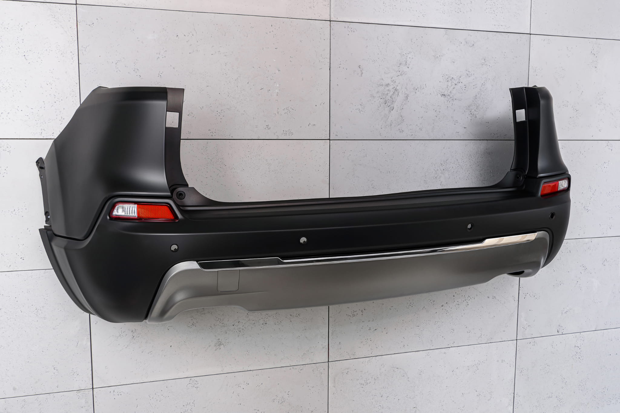 Kompletny zderzak tylny z otworami pod czujniki parkowania PDC, dla JEEP CHEROKEE V (KL) 2018-2023 (wersja po faceliftingu). Produkt posiada cztery otwory pod czujniki parkowania PDC.