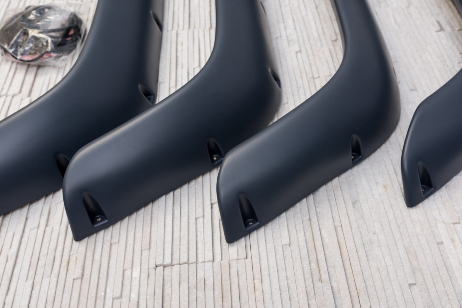 Masywny wygląd podkreśla off-roadowy charakter samochodu. Montaż wymaga wiercenia dodatkowych otworów w błotniku. Poszerzenia zostały zrobione z grubego, odpornego na wypaczenia materiału i malowane na kolor matowy czarny. Nadają się do montażu od razu po wyjęciu z pudełka. Szerokość każdego z poszerzeń to 12 cm.