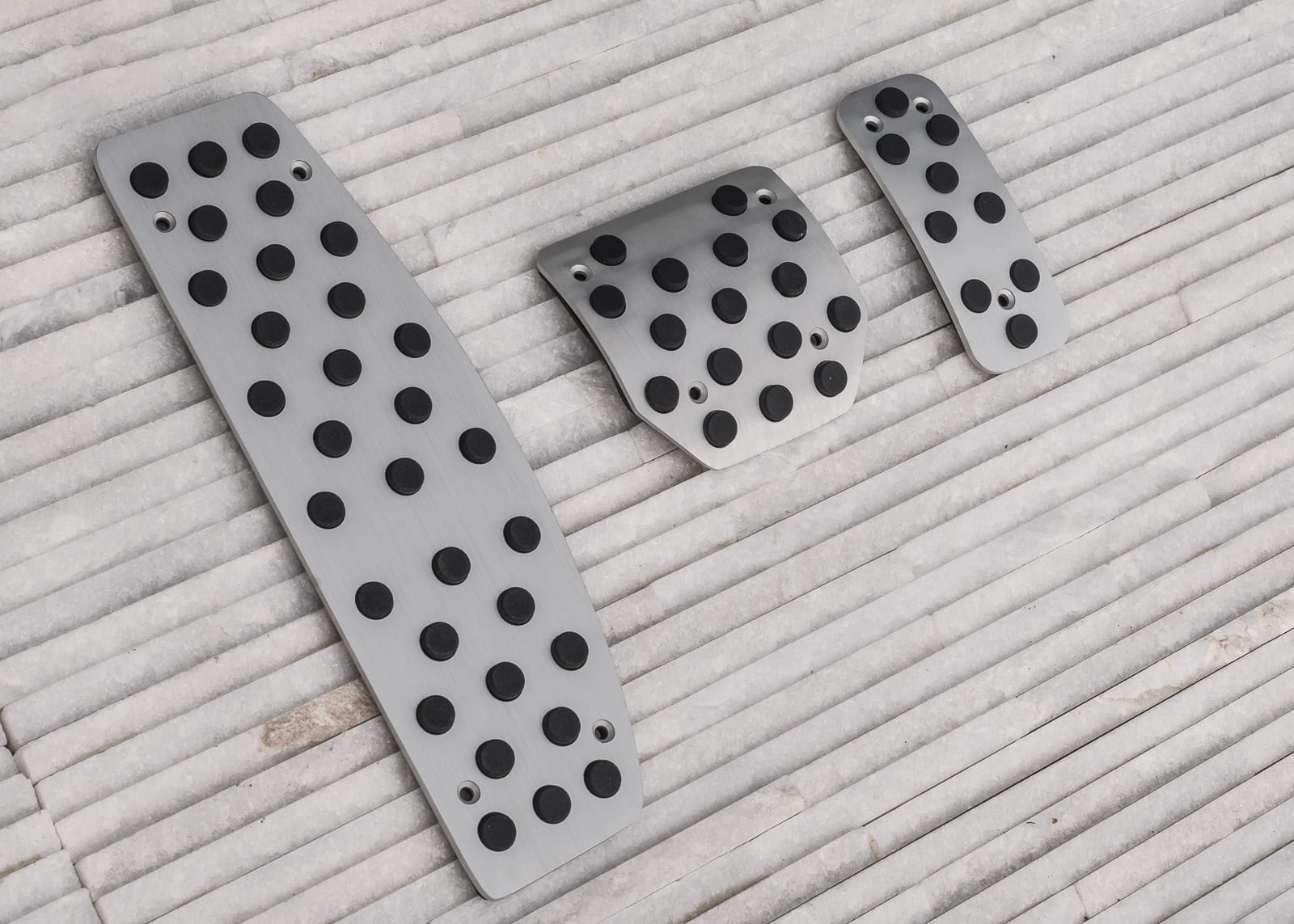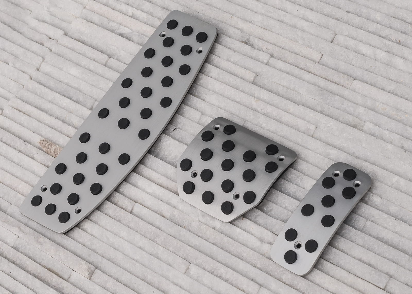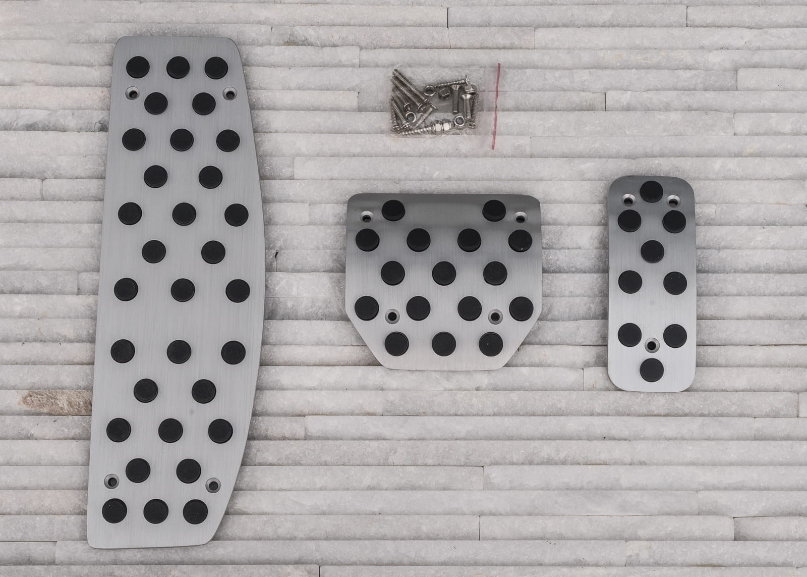 Komplet nakładek zaprojektowany został tak, aby zwiększyć komfort kierowcy podczas prowadzenia samochodu. Zintegrowane, gumowe elementy zapobiegają ślizganiu się podeszwy, co umożliwia pewniejsze operowanie pedałami podczas jazdy. Zastosowanie nakładek poprawia kontrolę nad autem w ekstremalnych sytuacjach, dzięki czemu mogą one mieć niebagatelny wpływ na bezpieczeństwo kierowcy i pasażerów. Nakładki wykonane zostały z materiałów wysokiej jakości, dzięki czemu są nie tylko trwałe, ale także prezentują się znakomicie przez długi czas. Dzięki zastosowaniu stali nierdzewnej, zestaw wspaniale komponuje się z innymi elementami wykończenia, podkreślając tym samym elegancki, dynamiczny charakter samochodu. Nakładki montuje się przy pomocy dołączonych wkrętów na fabryczne pedały. W zestawie znajduje się komplet widoczny na zdjęciach. Zapraszamy do zakupu!