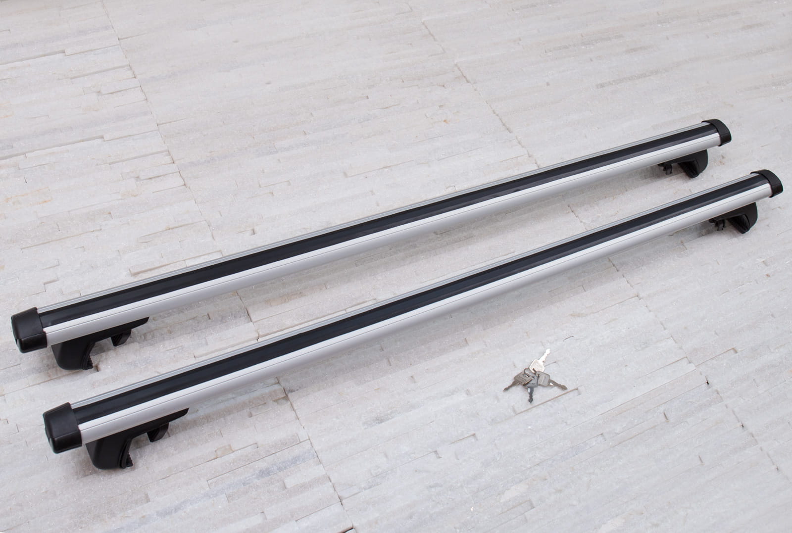 W komplecie znajdują się: dwie belki aluminiowe i cztery zaciski i system zabezpieczenia z kluczykami.