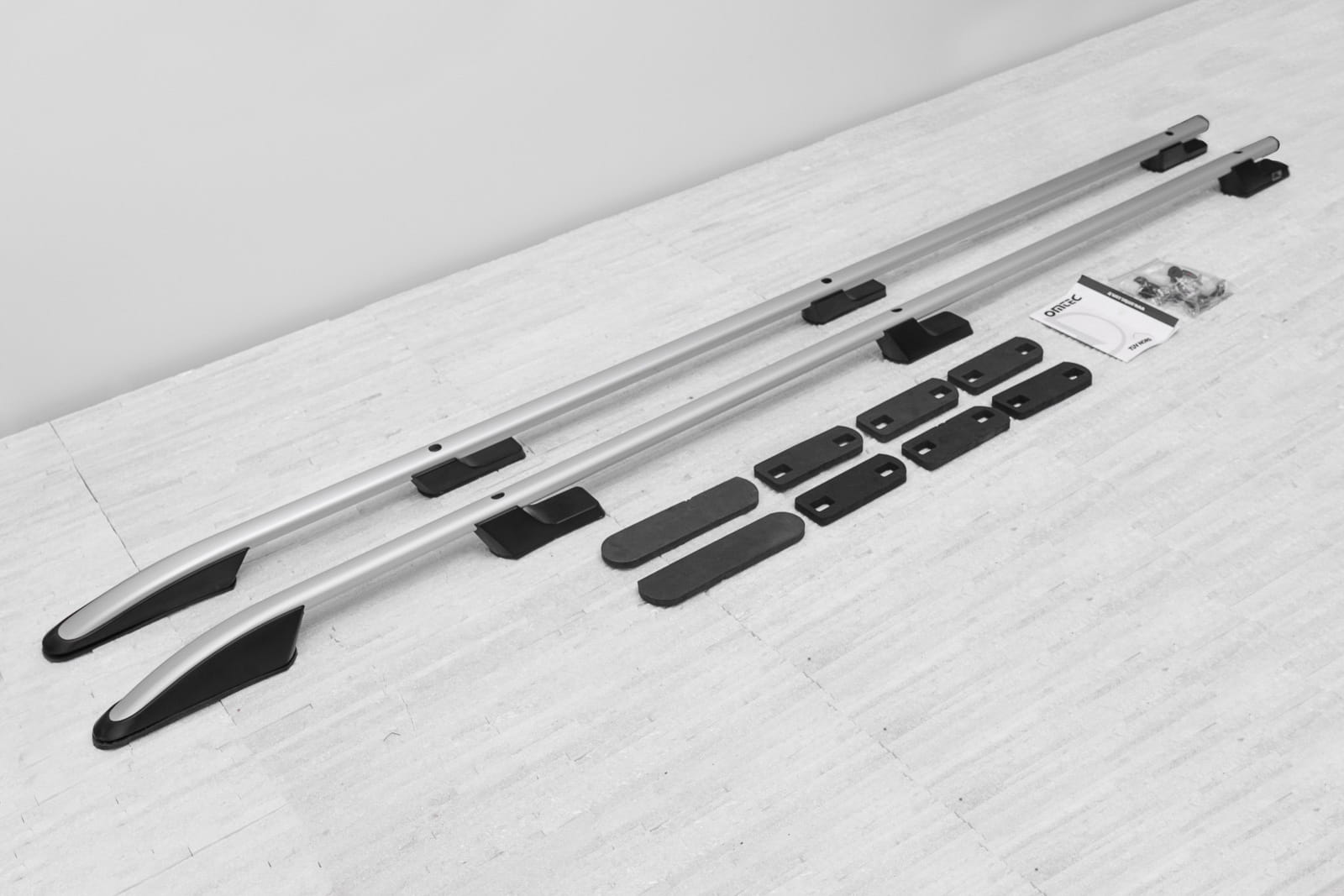 Srebrne relingi dachowe z otworami pod montaż belek, dedykowane do modelu OPEL VIVARO I A 2001-2014 (WERSJA DŁUGA XL)