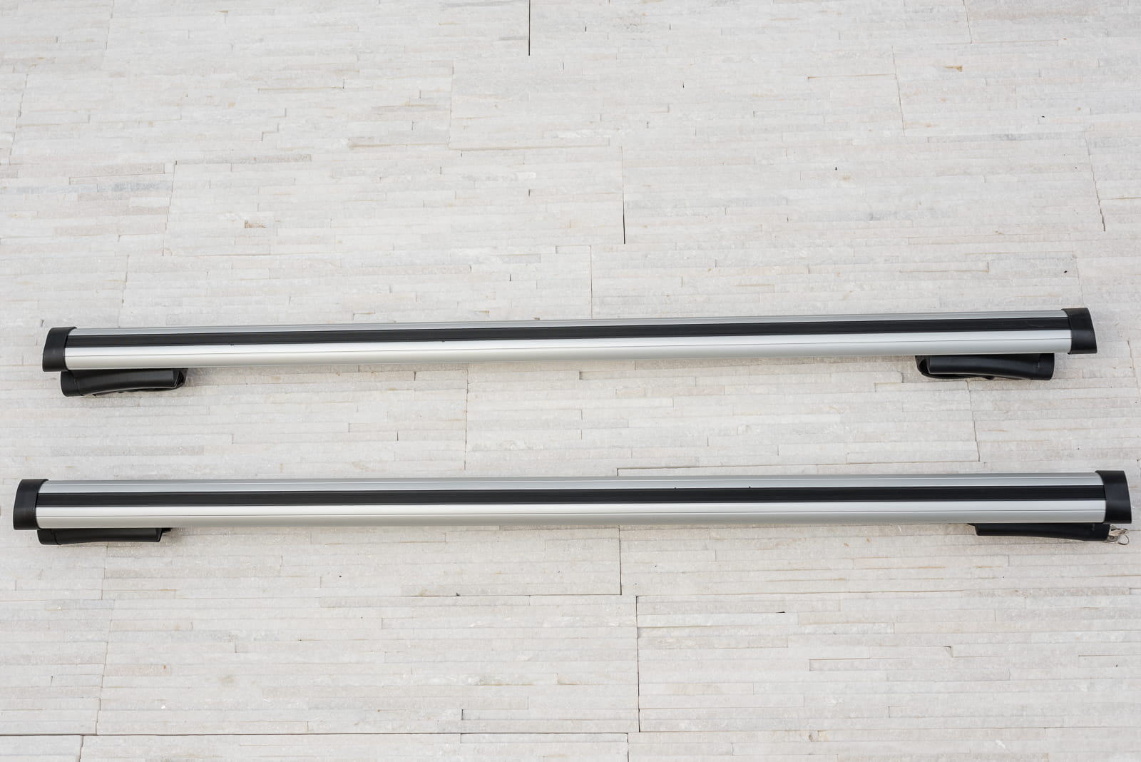 W komplecie znajdują się: dwie belki aluminiowe i cztery zaciski i system zabezpieczenia z kluczykami.