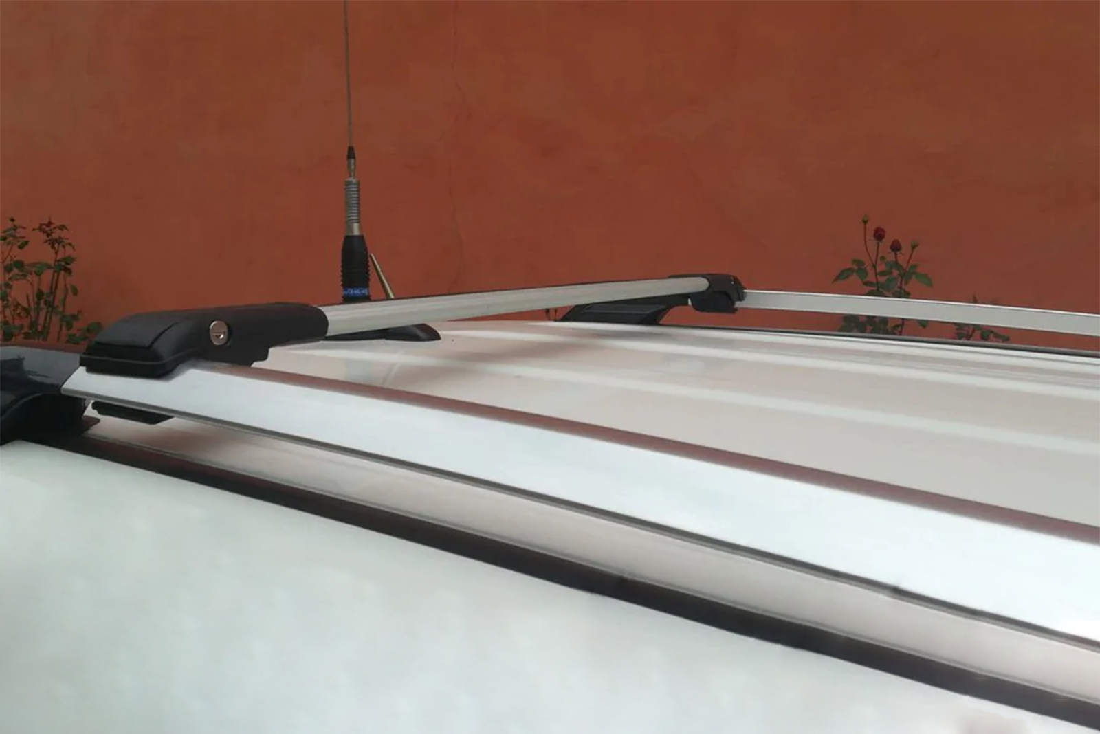 Bagażnik dachowy, belki bazowe montowany na relingi fabryczne odstające od dachu. Produkt dedykowany jest do samochodu SKODA KAROQ 2017-2021.