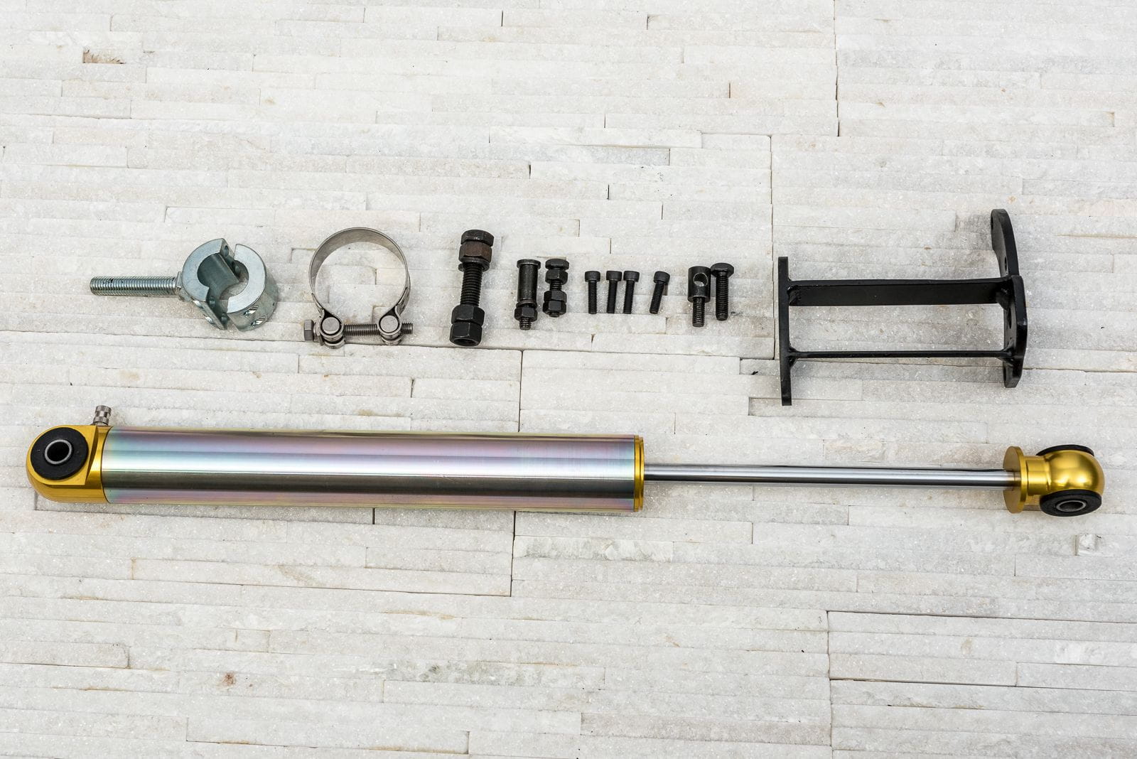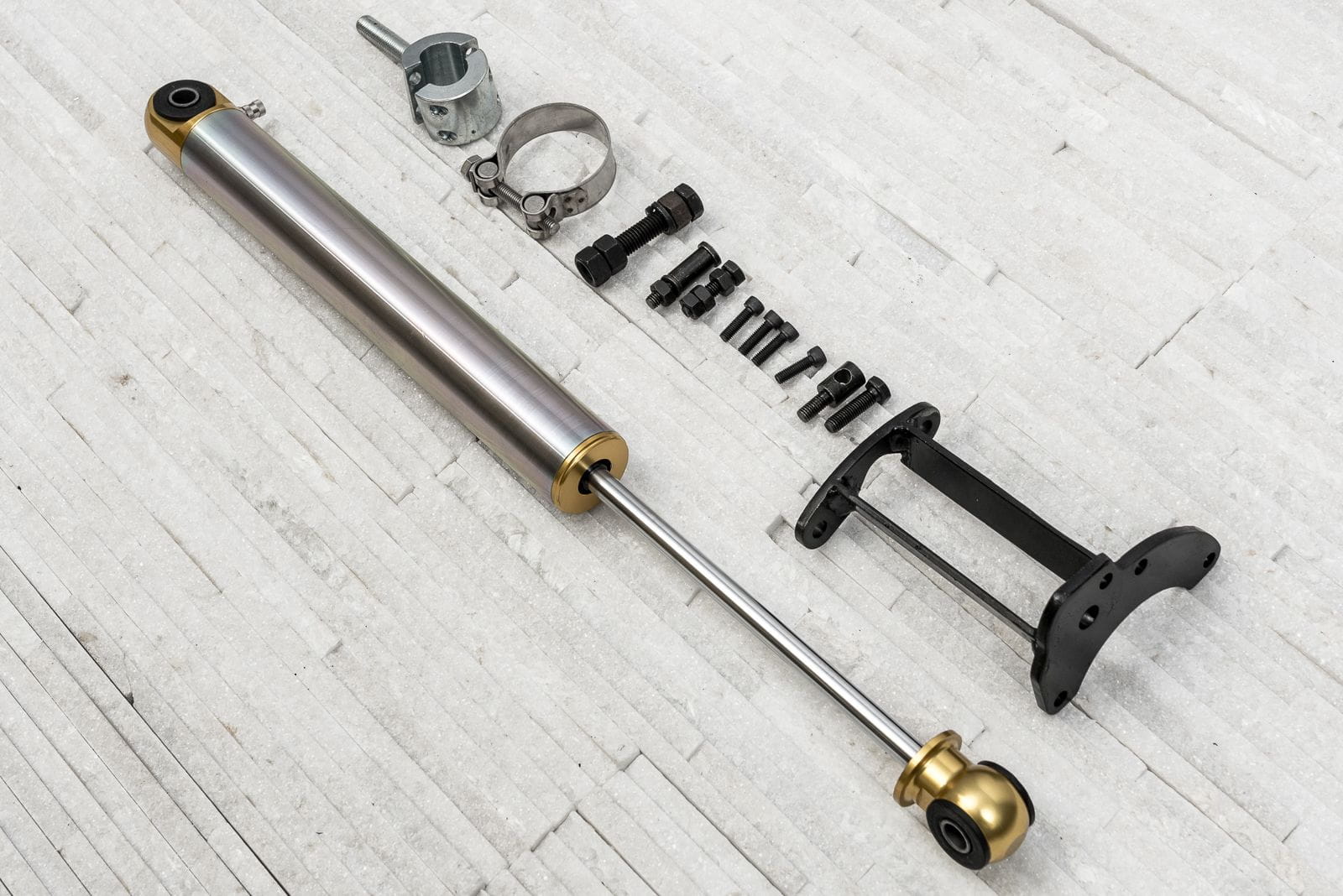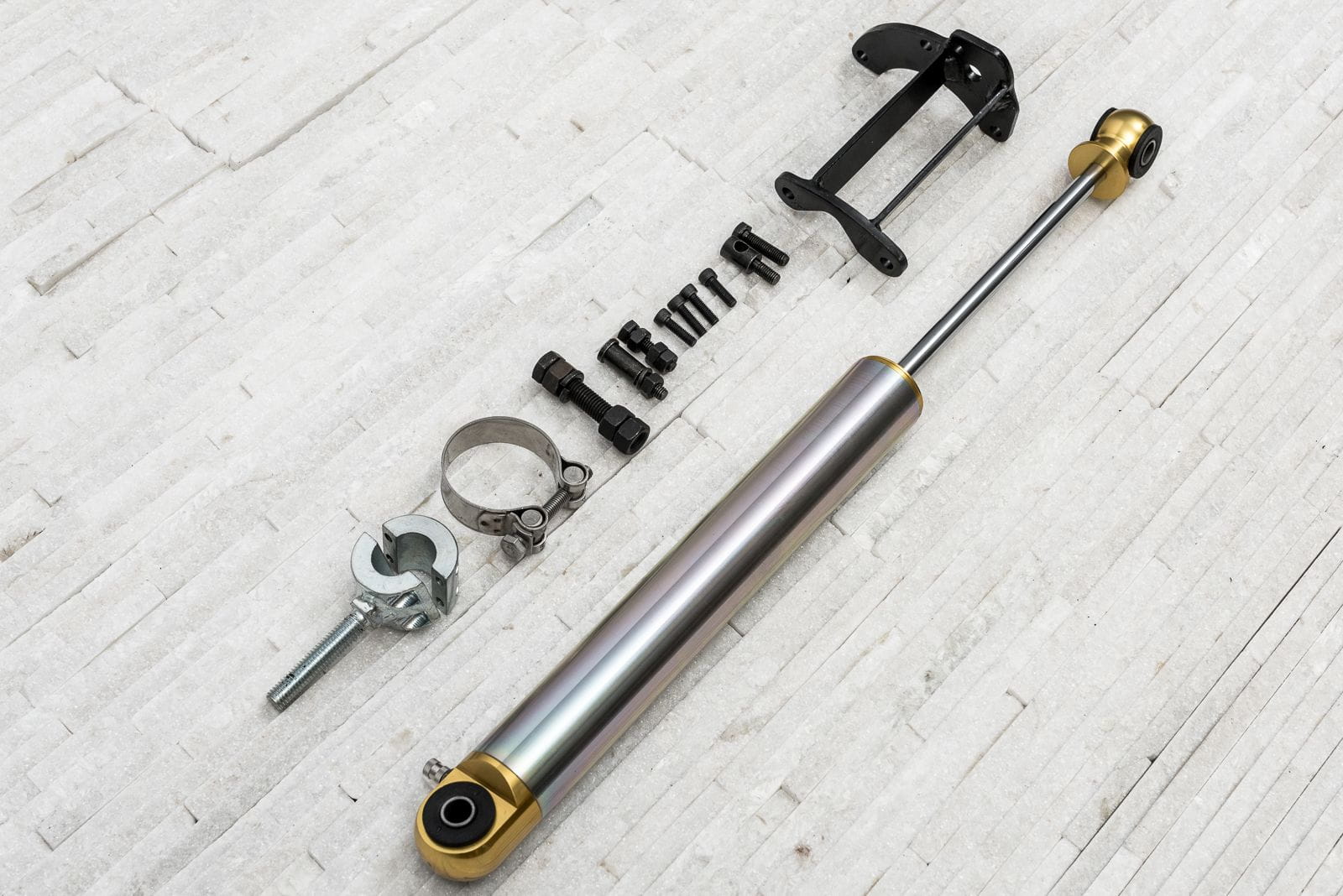 Amortyzator skrętu dedykowany do Suzuki Jimny 1998-2018. Amortyzator gazowy w zestawie z elementami montażowymi. Wyposażony jest w zawór pozwalający na zwiększenie ciśnienia lub zmniejszenie go - dzięki czemu za jego pomocą możemy zwiększać lub zmniejszać twardość amortyzatora. Czynność ta nie powinna zająć więcej niż kilka minut ponieważ urządzenie wyposażone jest w zawór standardowy, taki jak w kołach samochodu. Stabilizuje kierownicę, amortyzuje drgania, przedłuża żywotność układu kierowniczego. Produkt niezastąpiony w rajdach Produkt nowy, oryginalnie zapakowany. Zalecamy montaż profesjonalny! |