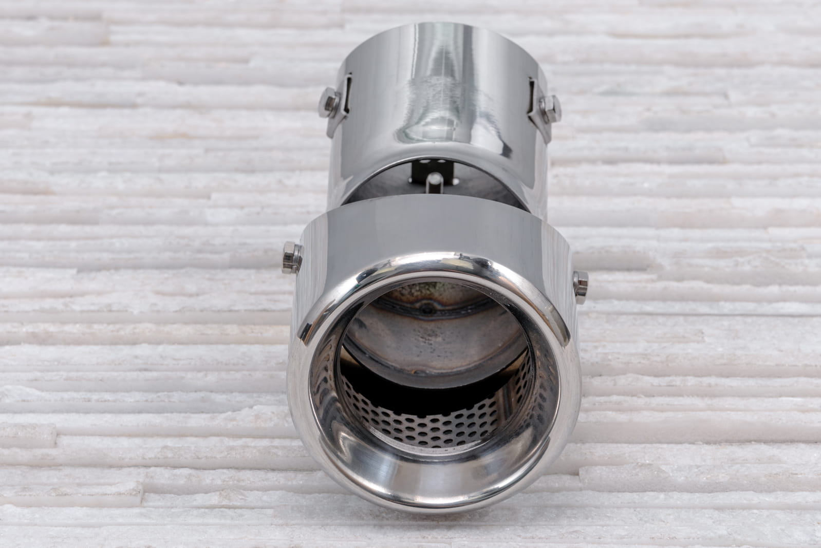 Montaż odbywa się poprzez nałożenie elementu na oryginalną rurę wydechu oraz dokręcenie znajdujących się w zestawie śrub, mocujących końcówkę na stałe. Zalecamy montaż profesjonalny.