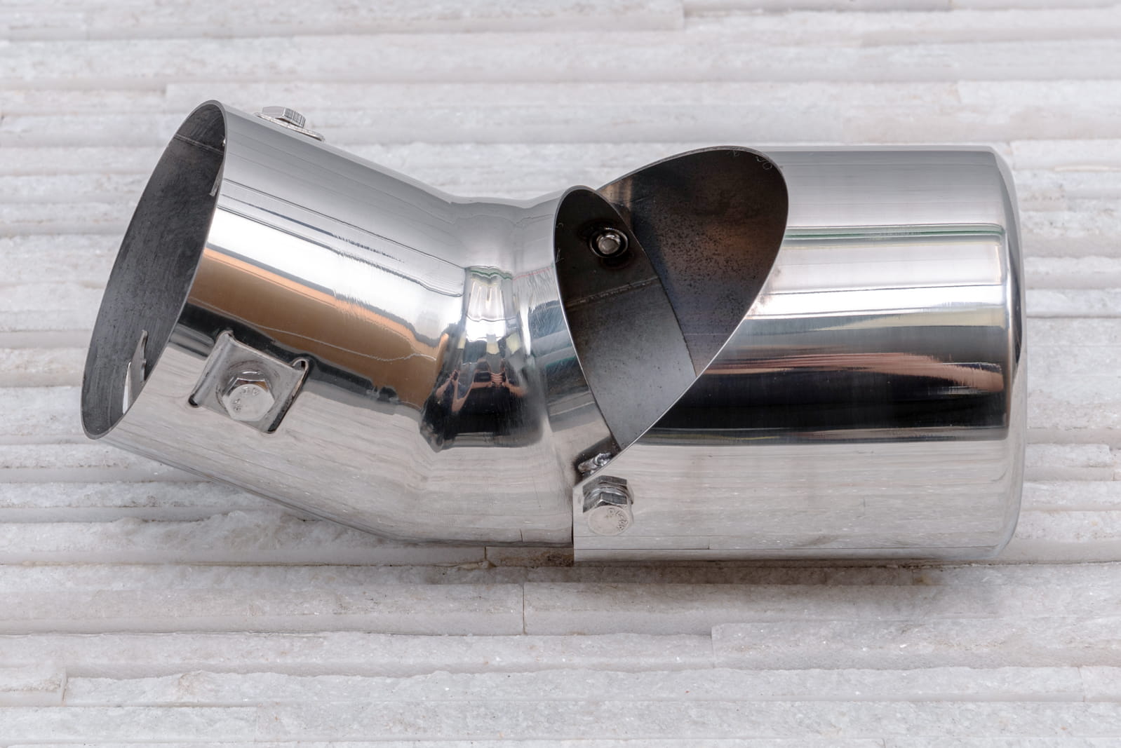 Stalowa końcówka wydechu zaprojektowana została tak, by idealnie podkreślać charakter samochodu, łączący sportową moc z nowoczesną elegancją. Element został wykonany z wysokiej jakości stali nierdzewnej, polerowanej. Produkt cechuje się wysoką odpornością na uszkodzenia spowodowane warunkami atmosferycznymi, działaniem substancji chemicznych itp. Dodatkowo końcówka posiada regulację kąta łamania, co pozwała na ustawienie właściwej pozycji.
