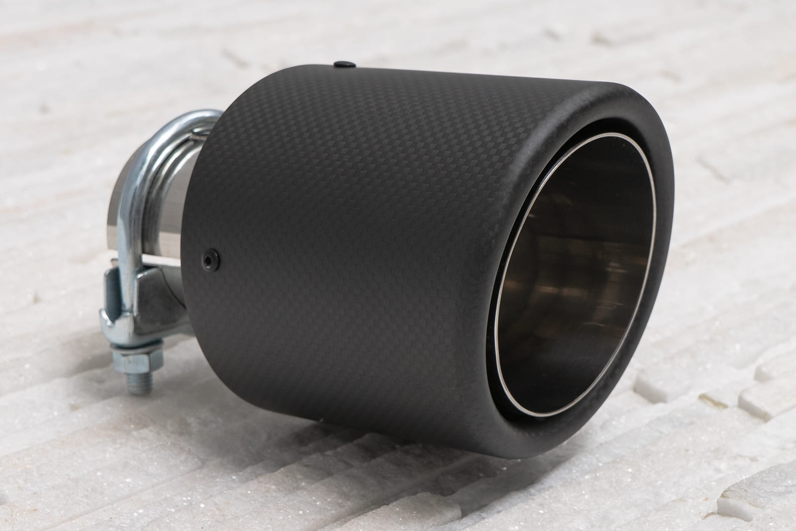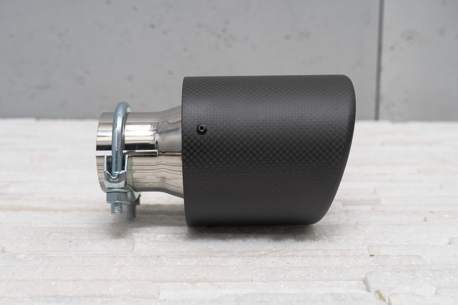 Stalowa końcówka wydechu zaprojektowana została tak, by idealnie podkreślać charakter samochodu, łączący sportową moc z nowoczesną elegancją. Model ten wyróżnia się ozdobną otoczką, inspirowaną znanym ze swej trwałości "carbonem". Dzięki strukturze stylizowanej na włókno węglowe, element uzupełnia styl auta modnym akcentem. Element został wykonany z wysokiej jakości stali nierdzewnej, polerowanej. Produkt cechuje się wysoką odpornością na uszkodzenia spowodowane warunkami atmosferycznymi, działaniem substancji chemicznych itp.