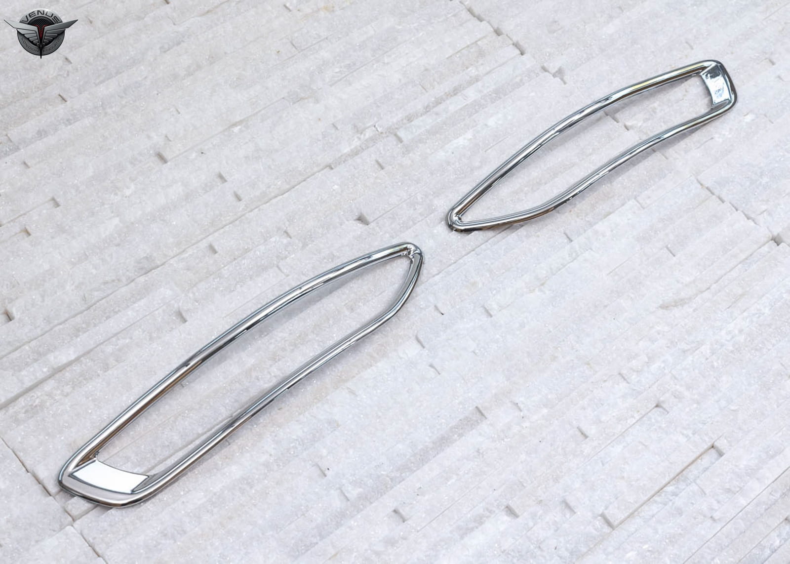 Zestaw zawiera komplet dwóch nakładek lamp. Produkt wykonany z wysokiej jakości chromowanego tworzywa ABS. Montowane są za pomocą taśmy dwustronnie klejącej Scotch 3M, zaaplikowanej na wewnętrznej stronie elementów. Zalecamy montaż profesjonalny.