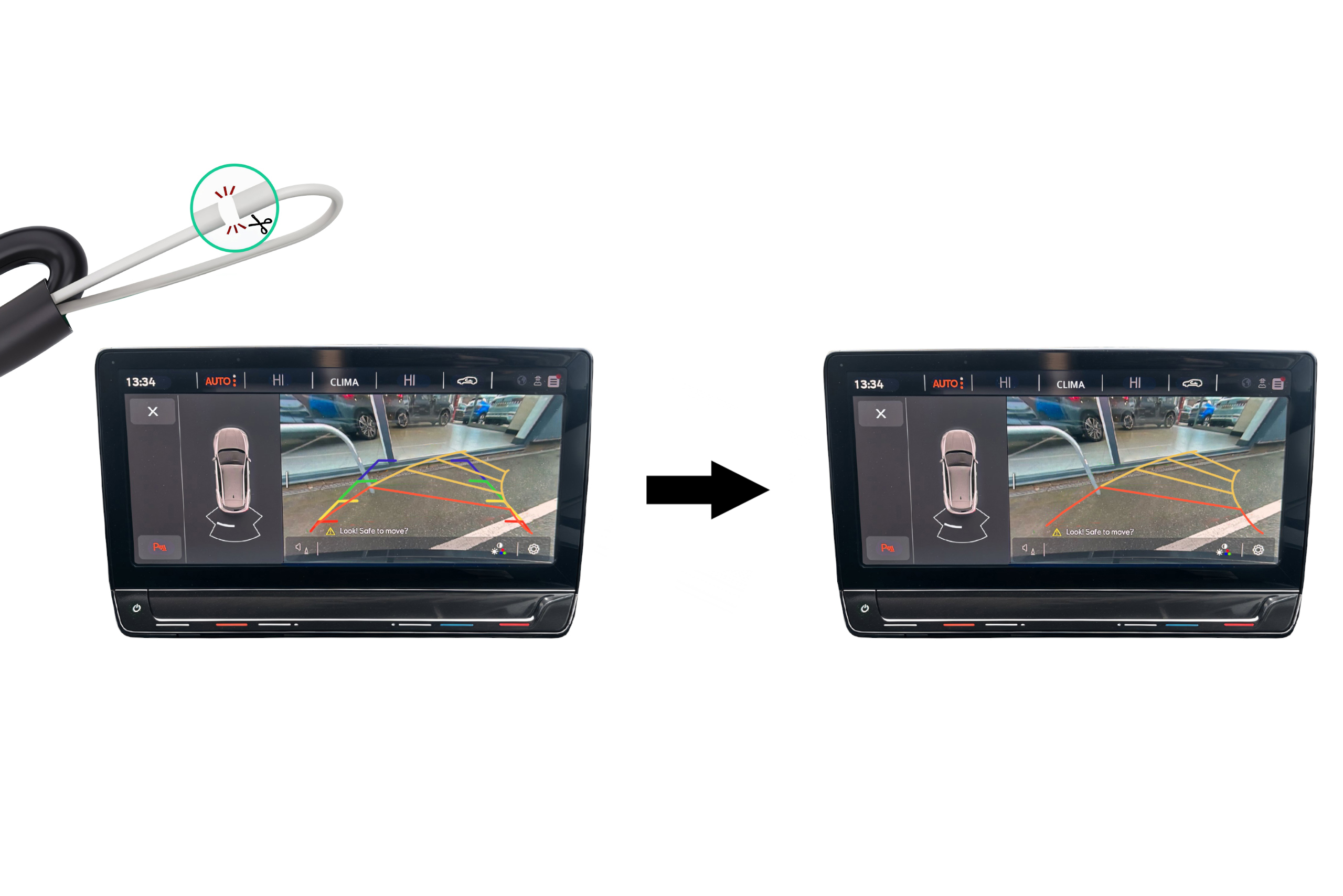 Kamera cofania FULL HD zintegrowana z klamką klapy tylnej, z funkcją dynamicznych linii prowadzących.