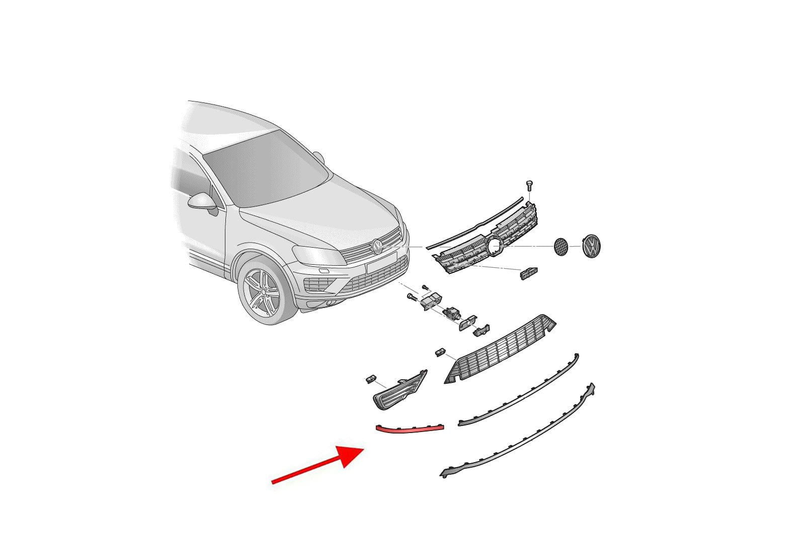 VOLKSWAGEN TOUAREG II 7P 2014-2018 PO FACELIFTINGU CHROMOWANA LISTWA PRZEDNIEGO ZDERZAKA PRAWA 7P68532533ZZ