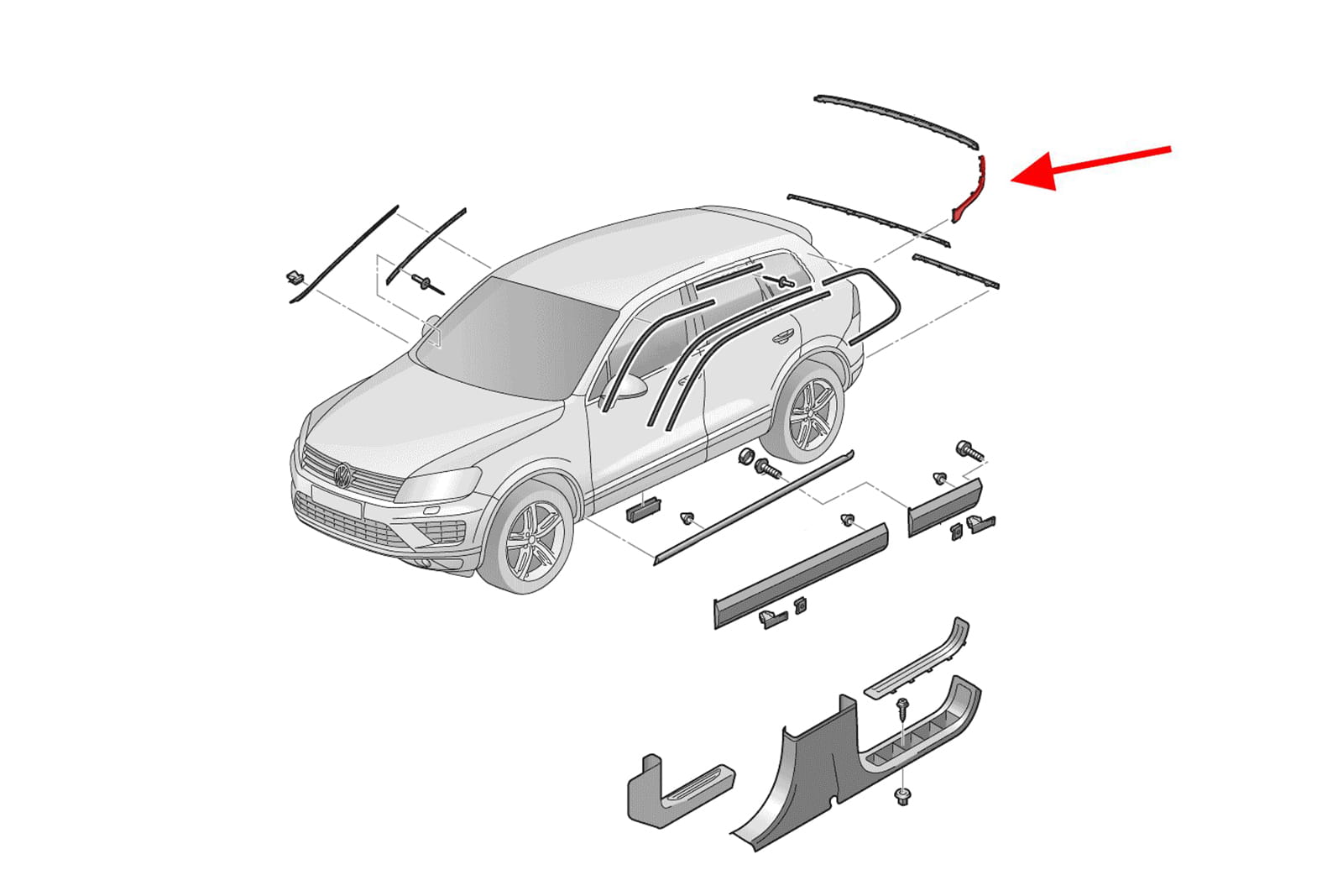 Chromowana listwa tylnego zderzaka, lewa, dla VW TOUAREG II (7P) 2014-2018 (wersja po faceliftingu).